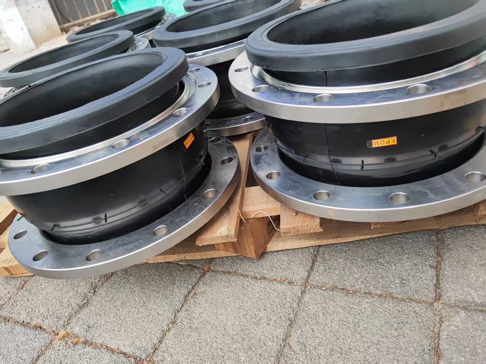 橡胶接头又叫做橡胶管软接头,柔性橡胶接头,橡胶软接头,可曲绕橡胶接头,高压橡胶接头,橡胶减震器,补偿器等。按连接方式分松套法兰式、固定法兰式和螺纹式3种;按结构可分为单球体、双球体、异径体、弯球体及风压盘管等5种。由内外层胶、帘布层和钢丝圈组成管状橡胶件,经硫化成型后再与金属法兰或平行接头松套组合而成。此产品可降低振动及噪声,并可对因温度变化引起的热胀冷缩起补偿作用,广泛应用于各种管道系统。